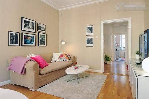 這個(gè)淡淡茶色的墻壁與深色的沙發(fā)相呼應(yīng),有著層次分明的搭配感。而顏色艷麗的軟軟靠墊則又是一鮮明的跳躍感。茶幾是簡(jiǎn)約風(fēng)格的,連同短毛地毯也是簡(jiǎn)潔的裝飾物。電視柜則是一個(gè)很好的收納空間,可以有效的收放家里所有的影碟,樂(lè)盤(pán)等等。這個(gè)房型實(shí)用面積不超過(guò)60平,風(fēng)格有點(diǎn)北歐的感覺(jué),不過(guò)卻是用現(xiàn)代的手法裝修,在軟裝飾上借用了北歐,這樣可以放大利用空間。
