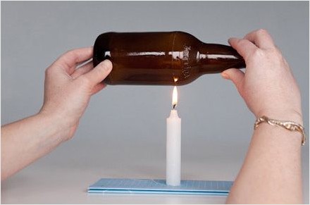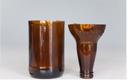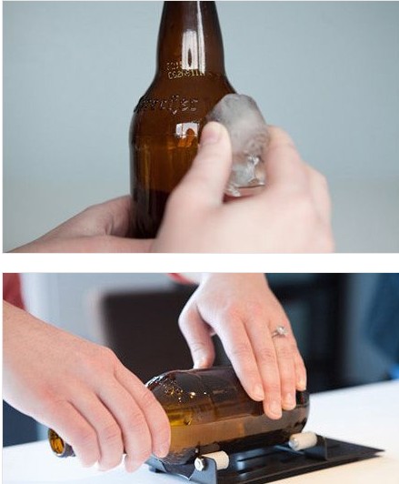 然后三是用火加熱瓶子,最后用冰領冷卻,借助熱脹冷縮使玻璃沿著第二步驟的裂口裂開,然后把不平整的瓶邊用砂子磨平。一個酒瓶花器就做好了!