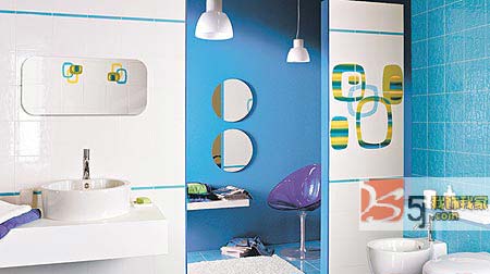 色彩飽和的單色小瓷磚,搭配潔白瓷磚,既能保留視覺鮮艷度,又不至于厚重,適合運(yùn)用在小空間。