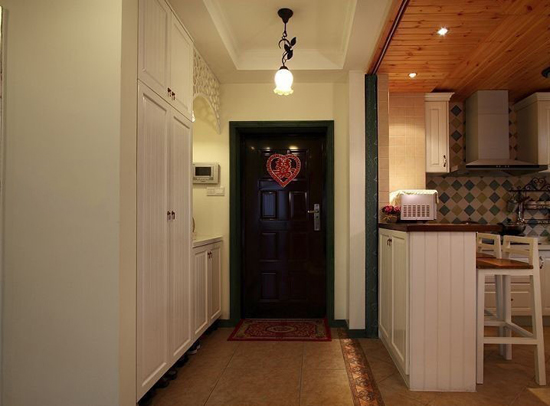 從玄關(guān)處進(jìn)門,很分明:一邊是鞋柜一邊是廚房,功能空間分得很明確卻也很實(shí)用。