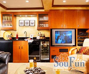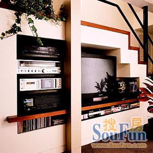同樣是在樓梯下的位置,電視機安放在這里能有效節(jié)約空間,不過要求空間稍大一些,還要裝得下DVD機、碟片等等。