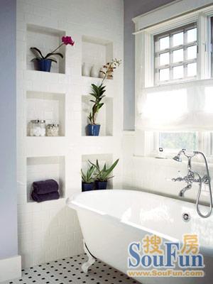 6個收納的格子上擺著各種植物,在綠意盎然的花園氣息中泡澡一定是美妙的,當然,如果你不想要植物,這里也能擺下所有洗澡時需要的東西。順便說一句,設(shè)計的靈感來自右邊的九格窗。