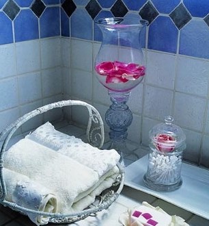 白色、藍(lán)色的組合將浴室的潔凈感進(jìn)一步提升,而些許粉色的點綴又為其注入了絲絲喜悅之情。