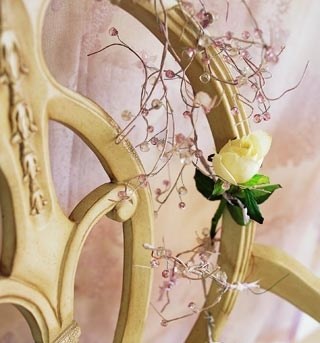 梳妝區(qū)是一個女孩即將蛻變成美麗新娘的地方。所以,在整個區(qū)域的布置上,不必出現(xiàn)任何奪目的色彩,因為新娘本身就是當(dāng)天最矚目的焦點。梳妝區(qū)的關(guān)鍵是要給美麗的新娘營造出一種安靜、甜美的氣氛,能讓她自信、從容地將自己裝扮得美麗、動人。新娘的裝飾物已經(jīng)非常繁多,所以這個區(qū)域一定要布置得盡量簡潔,物件擺放上不可過于繁雜,而色彩也以清淡為最佳。這里值得注意的是,在梳妝區(qū)要將新娘要用的裝飾,有序地擺放在明面上,不必將其裝在包裝盒內(nèi),一定要有包裝的物品,可以露出里面部分物品,有助于新娘找尋,使整個裝扮過程更加從容,也可大大縮短裝扮的時間。