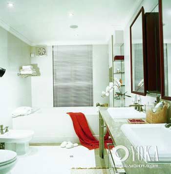 紅色是促使情緒起伏的顏色,如果置身其中,人難免激烈、亢奮而又容易疲憊。浴室的主人一定是富有**的,他用大量紅色來點(diǎn)綴家居中最本色的部分;但即使在浴室,也沒有放棄理性,冷靜的灰白恰如其分地約束了紅色的煥發(fā)。這里并不拒絕靈魂的燃燒,無形的節(jié)制卻又無處不在。白色令人聯(lián)想到無暇和純潔,浴室的主人在潛意識(shí)中追求的絕不僅僅是身體的一塵不染,他還傾向精神層面的自我凈化。