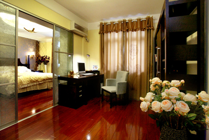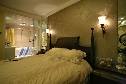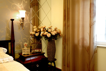 有沒有發(fā)現(xiàn),臥室背景墻的壁紙與客廳電視機的背景墻壁紙是一個系列的,如果沒有更好的裝飾搭配品位,那么不如都用同一個系列的肯定不會出錯了。