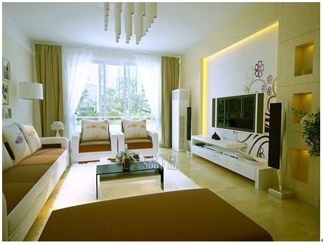最值得讓人思索的搭配莫過與地板和墻壁的色調(diào)。房間色調(diào)混入了黃色的綠調(diào),使空間氣氛看起來單純又有活力。電視背景墻上流暢的手繪圖案,舒展而有飽滿,而燈光照射下的背景墻,更有一種暖暖的溫馨。落地窗戶提升了房間的明亮感。