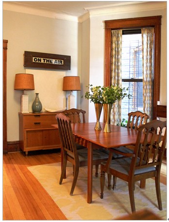 當你走進這個橙色飯廳,清新/明亮的視覺而感到心情愉悅。從燈光到地板都構造出一個似橙色非橙色的空間,咖啡色的原木家具在燈光的照射下顯得溫暖柔和,搭配上兩束綠色的植物,更顯得格外清新,讓這個艷陽高照的春季更加窩心。