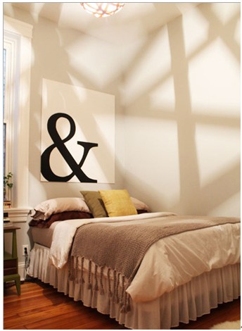 臥室很溫馨的色調,咖啡色/香檳色/白色,三色搭配完美的構建出一個溫馨舒適的空間,墻壁音符裝飾圖片,有種曲線的美感。鳥巢形線條的吊燈,夜晚使用可折射出斑駁的影像,灑滿整個居室空間,體現(xiàn)出另一種層次線條所帶來的美感。