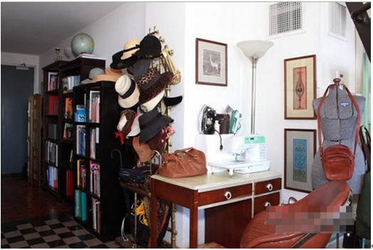 進門遍是滿墻的書籍,三個高度不一的書架擺放成梯形,增加室內(nèi)的立體線條。加上一旁衣帽架的設(shè)計,掛滿各式各樣的帽子,讓學(xué)習(xí)的地方變的溫馨起來,既能作為收納又很好的充填了房間的空隙。