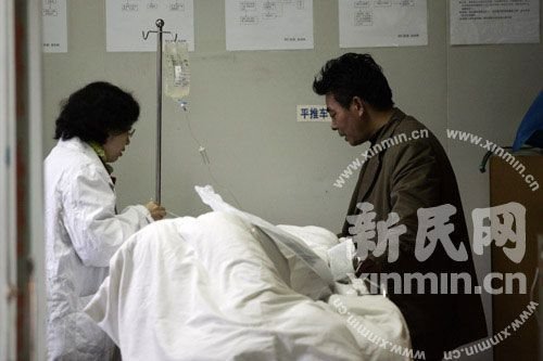 之后,新民網(wǎng)記者趕到同仁醫(yī)院時(shí),兩名民警正在搶救室內(nèi),一名中年男子正守候在跳樓男子身旁,神情焦急的看著躺在病床上的男子。新民網(wǎng)記者在搶救室門口看到,跳樓裸男身上蓋著白色的棉被,正在輸液,當(dāng)中年男子試圖與其溝通時(shí),跳樓男子口中不時(shí)喊出“煩死了”,精神還不錯(cuò)。(新民網(wǎng) 胡彥珣 蕭君瑋)