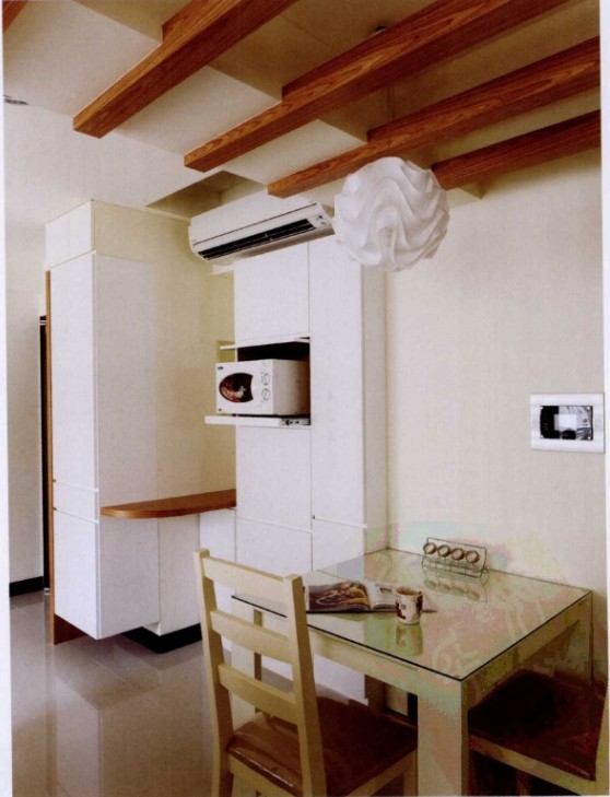 因?yàn)槭切∽≌?,所以屋主?duì)于把握空間的利用率更為在意,特別是收納功能的規(guī)劃很重視。除了收納空間的設(shè)計(jì)外,屋主對(duì)于空間風(fēng)格也有自己的偏好,喜歡明亮、清爽又帶溫馨的空間質(zhì)感。由于室內(nèi)只有50平,除了主臥外,其他空間皆采用開(kāi)放式設(shè)計(jì)。設(shè)計(jì)師順應(yīng)空間特性規(guī)劃收納功能,從入門(mén)玄關(guān)鞋柜連接餐柜,到哪臺(tái)連接書(shū)桌等等,皆以復(fù)合式功能概念規(guī)劃,屋主最重視的書(shū)柜也以雙層設(shè)計(jì)達(dá)到雙倍收納,充分利用了空間。