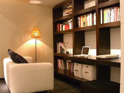 面積充裕的居室中,可以獨立布置一間書房,面積較小的居室可以辟出一個區(qū)域作為學(xué)習(xí)和工作的地方,可用書櫥隔斷,也可用柜子、布幔等隔開。