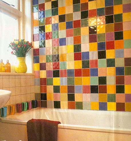 五顏六色的面磚,凸顯出衛(wèi)浴空間活躍感。面磚在陽光的照射下,使得浴室空間變得更加的鮮艷奪目。黃色的墻磚與粉色系的地磚搭配,宛如自己沐浴在一個(gè)蜜的糖果世界中。