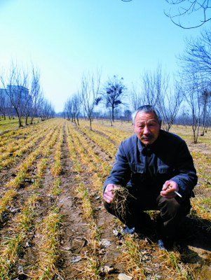 2月9日,新朱莊村民魏義功在枯黃麥田里愁眉不展