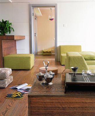 客廳也是新經(jīng)典風(fēng)格,簡單平實(shí)中透露細(xì)節(jié)的溫婉輕盈。實(shí)木的運(yùn)用松軟的腳踏消除玻璃茶幾的冰冷,體現(xiàn)內(nèi)斂節(jié)制的居室性格。