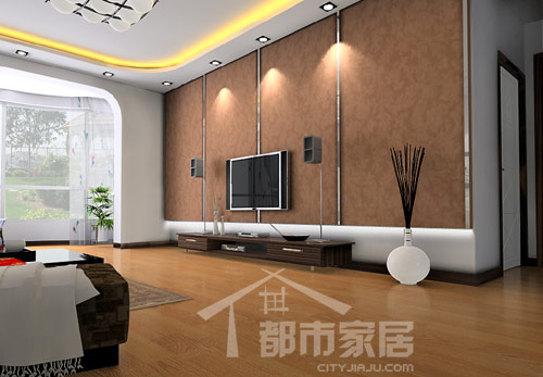 客廳的電視背景墻一般來說都是裝修中的重中之重,我們來看看這里吧:再簡單不過的裝修手法,印花壁紙加不銹鋼條,用一個(gè)詞語來形容就是勻稱。不銹鋼條將背景墻均勻地分作四份,壁紙的花色也是均勻而柔和的,淡橘色和木地板的顏色之間協(xié)調(diào)得幾乎不需要過渡。整個(gè)背景墻給人一種中庸的印象。中庸又怎么了?這正是業(yè)主所追求的效果,不要張揚(yáng)和突兀,風(fēng)格化不要那么明顯,一個(gè)親和力十足的家反而更讓人輕松自在。