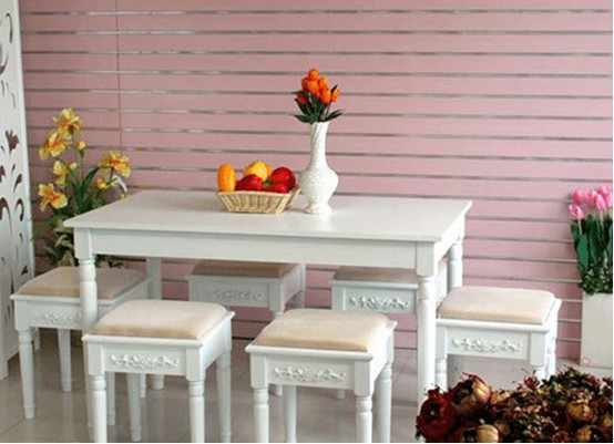 餐桌椅選用了水曲柳實木框架,實木腳,仿古白的色調(diào),顯得大方、自然,沒有矯揉造作。相當程度上表現(xiàn)出其居住者的品位、愛好和生活價值觀。