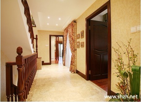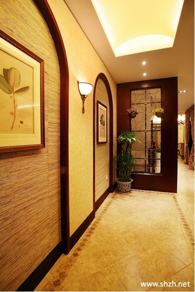 概要: 用花磚延長視線,這個走廊樸實無華,回歸走廊最本真特質(zhì),即連接室個各個空間的通道。質(zhì)地精良的仿古磚,溫暖的色澤讓人看去就非常舒服,同時可以把人的視線由遠到近的領到玄關屏風后面的景致?! 〉湫偷默F(xiàn)代中式風格,典雅秀麗又透著現(xiàn)代簡約的干練。這個樓梯口過道,是二樓通往三樓的樓梯過道。二樓的兩個功能間,都是大的套間,合理的分配是這個家的重要設計。