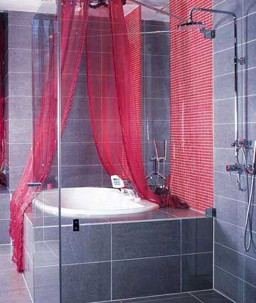 概要: 營(yíng)造沐浴時(shí)的浪漫片段,除了燭光和音樂,在浴缸上方的吊頂上安裝一個(gè)圓形支架,就像掛床幔那樣掛上你喜愛的紗簾,對(duì)于氣氛的烘托比燭光來得更自然直接,方法很簡(jiǎn)單,卻是新的創(chuàng)意體驗(yàn)?!〔A梁蟮膲Ρ谟盟囆g(shù)瓷磚或馬賽克裝飾,浴室里立刻有了靈動(dòng)的氣息。 自由——開放式淋浴區(qū) 開放式淋浴區(qū)更適合氣候干燥的北方,簡(jiǎn)潔明快的風(fēng)格,深受年輕人群的青睞。