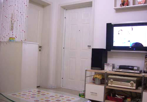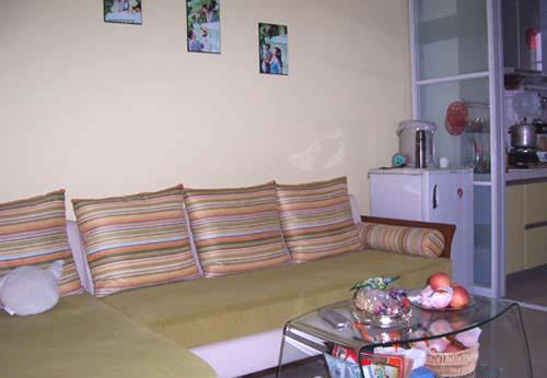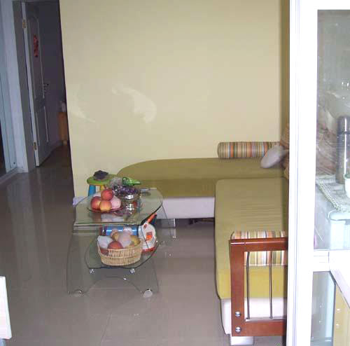 概要: 墻體顏色主要為白色,同時沙發(fā)的背景墻上為淡淡的黃色,同時,沙發(fā)前方擺放著玻璃茶幾。進門的右手邊是一個柜子,為起到玄關(guān)的作用,在柜子后面添加一個垂簾,起到隔開空間的效果。沙發(fā)屬于布藝書法,材質(zhì)屬于絨毛布,在手感上和坐上去的舒適度都非常不錯??蛷d采用的是地磚,看地磚的反光程度就知道地磚比較平。但是,屬于防滑的地磚,所以雖然看上去有如鏡面,但是別擔(dān)心會被滑倒。