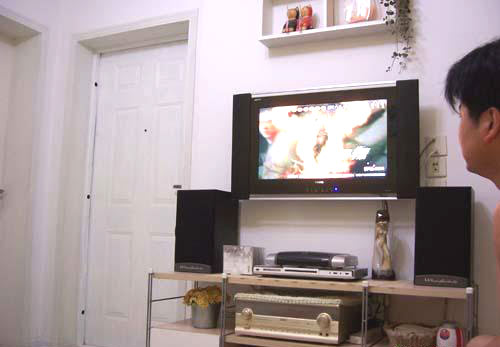 電視背景墻 電視機采用的是掛式機