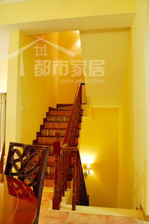小編還注意到餐廳正對的樓梯很有特色,間隔的花磚鋪貼讓平凡的樓梯也變得花樣百出。設(shè)計(jì)師介紹說:“這種用花磚鋪貼樓梯的辦法在地中海風(fēng)格里很常見。我用的是一層素色與一層花色相搭配,還可以用不同的兩種花色相搭配,那樣看起來會更加花哨一些?!闭嫫?!學(xué)習(xí)了,以后小編也要這樣搭配。