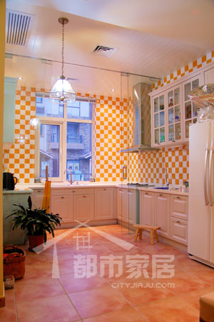 廚房屬于開放式,但是由于進(jìn)深超大,幾乎不用擔(dān)心油煙會沖出廚房,干擾到餐廳和客廳,這也是大房子獨(dú)具的優(yōu)點(diǎn)??!小編特別喜歡廚房里橙色的馬賽克拼貼,居家感十足,不像通常的別墅廚房那樣奢華、精美、不實(shí)用。