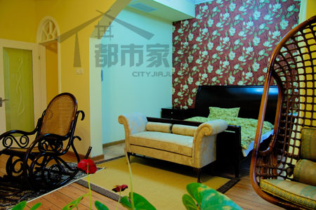最后我們再來看看樓上主人的臥室吧!果然也是很鮮艷很熱鬧!其實(shí)里面的裝修非常簡單,熱鬧的感覺主要來自于床頭墻面上紅色的大花朵壁紙。設(shè)計(jì)師說:“其實(shí)我個(gè)人并不建議把臥室里裝點(diǎn)得這么花哨、熱鬧,一般來說臥室適宜安靜、平和。不過主人就是喜歡這樣的風(fēng)格,所以我選用了這個(gè)壁紙。臥室里間的墻保留了白色,外間的墻則和餐廳一樣是暖融融的黃色,這樣顯得空間更有層次感?!?/FONT>