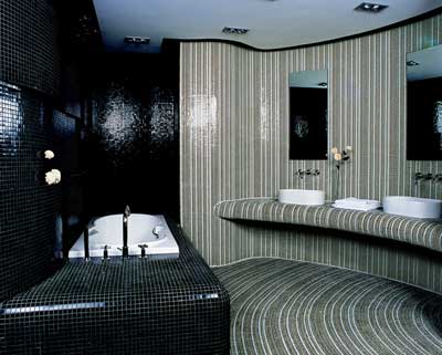 奢華的浴缸,高貴浴柜,優(yōu)雅的面盆,曖昧的坐便……所有衛(wèi)浴產(chǎn)品和飾物美滿(mǎn)的融合在一起,一切都沉靜在精致而冷酷的背景里。正由于馬賽克的存在,才使衛(wèi)浴環(huán)境與其他家居空間截然不同,它們不是衛(wèi)浴的配角,是衛(wèi)浴環(huán)境熠熠生輝的最大功臣。