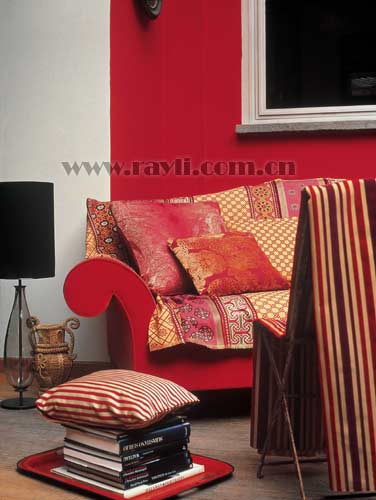 即使是西式的家居布置,同樣可以選用艷麗的東方風(fēng)格布藝做裝點(diǎn)。東方艷麗風(fēng)格布藝的紅色恰好與空間里的紅色墻壁、沙發(fā)屬于同一個(gè)色系,搭配出十分和諧的效果。西亞的建筑圖案與中國(guó)的傳統(tǒng)紋樣疊在一起使用,并且搭配了材質(zhì)相近、顏色相似的條紋布藝作為橋梁,令東方艷麗的風(fēng)格更為突出,與居室整體的風(fēng)格也更加諧調(diào)?!?FONT face=Verdana>