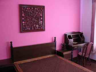 當(dāng)?shù)氐娘椘芳凹揖佣酁槭止ぶ谱?,?gòu)思造型奇特富于靈氣鄉(xiāng)土氣息濃重。東南亞元素最能體現(xiàn)物我相融的境界,自然的闊葉植物、鮮艷的花卉、寓意美好的蓮花是人們的最愛。在一間充滿熱帶風(fēng)情的居室中,用大花墻紙可以使居室顯得緊湊華麗,這種圖案元素來自東南亞的服飾設(shè)計,比如華麗的衣衫或鞋子,另一方面則出自對熱帶植物的遐想。這種花型的表現(xiàn)并不是大面積的,而是以區(qū)域型呈現(xiàn)的,比如在墻壁的中間部位或者以橫條豎條的形式呈現(xiàn)。同時圖案與色彩是非常協(xié)調(diào)的,往往是一個色系的圖案。東南亞風(fēng)格的圖案設(shè)計是有其代表性元素的。