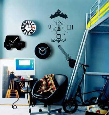 裝飾講究個(gè)性和偏好,把各種各樣的鐘表釘在墻上,灰色的墻面看起來(lái)不再呆板,有些童趣的造型,線條簡(jiǎn)單,詼諧有趣,讓人心情愉悅,墻面也變得鮮活起來(lái)。