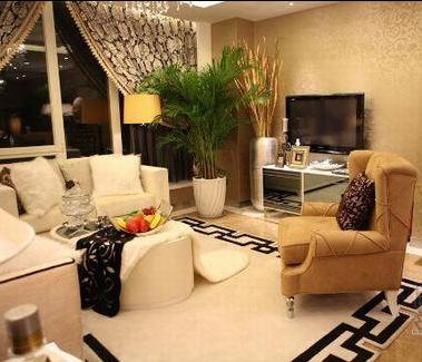 概要: 這套房子在整體裝修設計上并沒有花費太多的功夫,天花板和地面均以淺咖啡色為主調(diào),墻面也只是貼上一層淺咖啡色的花紋墻紙,空間的視覺效果重點突出在擺設上,以歐式為主基調(diào),典雅、奢華、時尚水晶吊燈、玻璃餐具,清透的質(zhì)地減少了空間的厚重,增添幾分華麗感。頗具東方元素的地毯將客廳與餐廳清晰地劃分開,巧妙地實現(xiàn)了分而不斷,絲毫無損房間的整體、連貫,讓房間顯得大氣、寬敞。