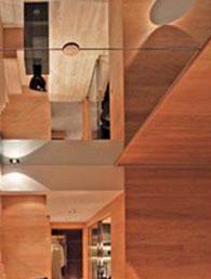 現(xiàn)代感的室內(nèi)裝飾在選材上不再局限于石材、木材、面磚等天然材料,而是將選擇范圍擴(kuò)大到金屬、涂料、玻璃、塑料以及合成材料,并且夸張材料之間的結(jié)構(gòu)關(guān)系,從而塑造出一種區(qū)別于傳統(tǒng)風(fēng)格的、具有很大張力的室內(nèi)空間。