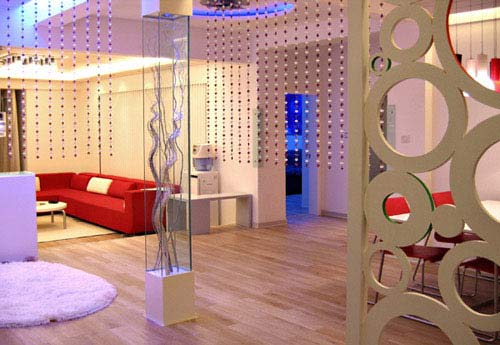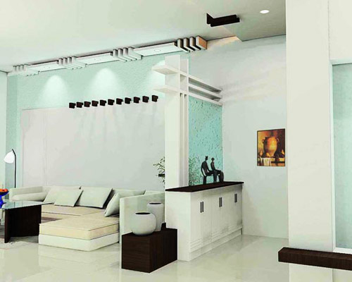 1. 客廳玄關(guān)的間隔應以下面實心,防止外泄,上面以通透為主。因此可以用通透的磨砂玻璃或者空心的博古架之類的。