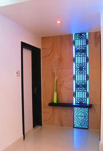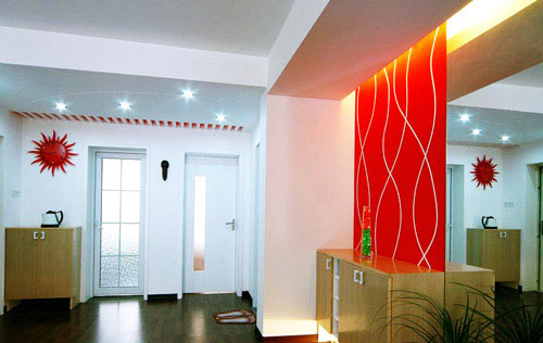 2. 客廳玄關(guān)的采光宜明不宜暗 ,而大部分住宅的玄關(guān) ,都沒有自然光源 , 因此在采光方面必須多動腦筋。除了間隔宜采用較通透的磨砂玻璃之外,客廳玄關(guān)大多沒有室外的自然光 , 便要用室內(nèi)的燈光來補救 ,例如安裝燈之類的。