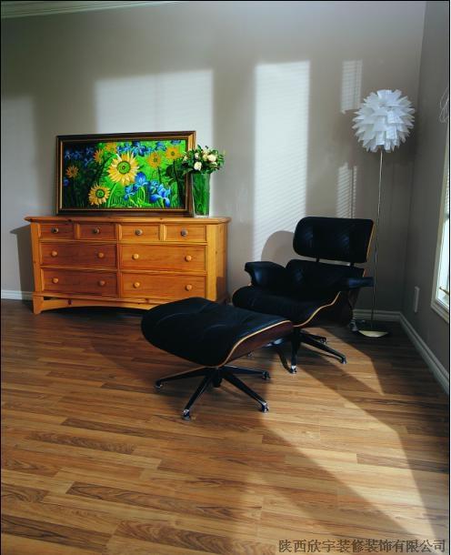 三、從表面涂層的分有三氧化二鋁的,三聚氰胺的,鋼琴漆面的。標(biāo)準(zhǔn)的強(qiáng)化地板表面,應(yīng)該都是含有三氧化二鋁耐磨紙的。它有46克、38克、33克,還有更低的,直接在裝飾紙上噴涂三氧化二鋁的。國(guó)家規(guī)定,室內(nèi)用的強(qiáng)化地板的表面耐磨轉(zhuǎn)數(shù)應(yīng)該在6000轉(zhuǎn)以上,只要用46克耐磨紙的地板,才能保證達(dá)到要求。38克耐磨紙的耐磨轉(zhuǎn)數(shù)可以達(dá)到4000-5000轉(zhuǎn);33克更低;直接噴涂三氧化二鋁的,能達(dá)到2000-3000轉(zhuǎn)就很好了。耐磨轉(zhuǎn)數(shù)低的,材料成本比較低;由于它耐磨程度低,加工時(shí)的刀具成本也低。相反,耐磨轉(zhuǎn)數(shù)高,本身的成本就高出不少。三聚氰胺表面涂層的,一般用于墻板,桌面板等,用在耐磨程度要求不高的地方。在地板行業(yè)內(nèi)將這類表面涂層的地板稱為“假地板”。它的耐磨轉(zhuǎn)數(shù)只有300-500轉(zhuǎn)。使用強(qiáng)度大的話,兩三個(gè)月,表面的裝飾紙,就會(huì)磨損。標(biāo)準(zhǔn)的強(qiáng)化地板正常使用10年都不會(huì)出現(xiàn)這樣的問(wèn)題。這類地板裝飾紙上面沒(méi)有耐磨層,看起來(lái),花紋好看,清楚。用手摸著也比較光滑。這正是外行容易上當(dāng)?shù)牡胤?。鋼琴漆表面涂層的,?shí)際上是將用于實(shí)木地板表面的油漆,用于強(qiáng)化地板。采用的是比較亮的油漆而已。這種涂層的耐磨程度遠(yuǎn)不能與三氧化二鋁表面相比。它的耐磨程度低,目前實(shí)木地板都在向具有高耐磨程度的方面發(fā)展。除非你特喜歡這種表面的涂層。