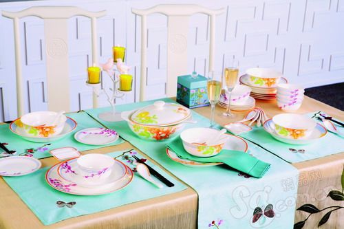 精美的玻璃紗銀絲貼繡工藝和特殊的燙鉆工藝,加之中國(guó)傳統(tǒng)的團(tuán)花、翦梅、花鳥圖案,與具有濃郁中國(guó)風(fēng)的抱枕、桌巾、桌旗、桌墊等,構(gòu)成HOLA特力屋這一季的主推商品之一。經(jīng)由1250℃高溫素?zé)?,再以郎世寧工筆畫手法繪制花鳥圖案并經(jīng)1150℃釉燒而成的骨瓷餐具,更是將中國(guó)元素演繹到極致。