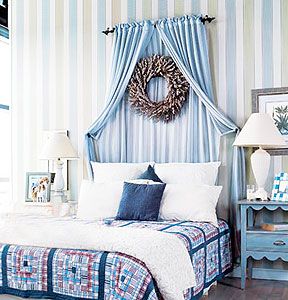 現(xiàn)代的都市人,生活在鋼筋水泥之中。每天面對(duì)汽車(chē),電腦,還有緊張的工作與應(yīng)酬!心里得不到片刻的寧?kù)o。人們向往那種藍(lán)天,碧海的環(huán)境,憧憬自由,浪漫與輕松的生活方式。這正是地中海風(fēng)格的裝潢,像這個(gè)臥室的裝潢,墻壁選擇浪漫的藍(lán)色,讓人感覺(jué)走進(jìn)了大自然,心情也格外的舒暢。