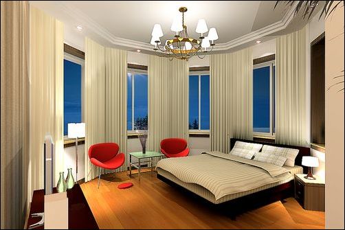 2、臥室的燈光要溫馨,臥室的光源:一是自然光,二是人工采光。自然光主要以太陽(yáng)為光源,人工采光即是使用燈具照明。通常臥室的照明包括普通照明、局部照明和裝飾照明三種類型。普通照明供休息起居之用,而梳妝、更衣、床頭閱讀等活動(dòng),則需要局部的照明,而裝飾照明以情調(diào)為目的。臥室中的普通照明需注意的是燈光要柔和、溫馨、有變化,避免采用室內(nèi)中央的惟一大燈,光線勿太強(qiáng)或過(guò)白,因?yàn)檫@種燈光常使臥室內(nèi)顯得呆板沒(méi)有生氣。如果選用天花板吊燈時(shí),則必須選用有暖色光度的燈具,并配以適當(dāng)?shù)臒粽?,否則懸掛笨重的燈具在天花板上,光線投射不佳,室內(nèi)氣氛大打折扣。臥室的照明燈具類型有:嵌頂燈、吸頂燈、壁燈及活動(dòng)燈具。照明還需具有彈性,溫馨且輕松。不論是更衣、梳妝、閱讀等活動(dòng),均需有適宜的光線搭配,透過(guò)完美有效的照明設(shè)計(jì)令室內(nèi)空間個(gè)性得以完整表達(dá)。