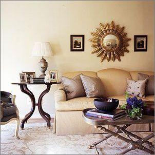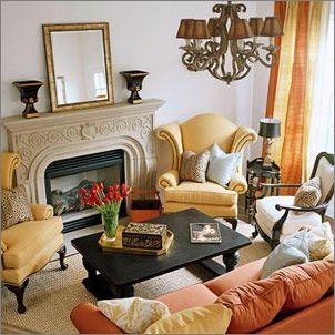 一個(gè)圓形的會(huì)話區(qū),能使客廳顯得親密富有人情味。明亮的桔色和黃色,加上中性的裝飾配件,這些細(xì)節(jié)的點(diǎn)綴,讓狹小的空間顯得自然有序。