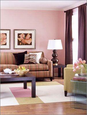 粉色給人的感覺(jué)是太**,不容易搭配。其實(shí)深棕色的家具可以很好的融入其中,不過(guò)家具的線條一定要簡(jiǎn)潔,否則會(huì)讓客廳顯得太過(guò)于復(fù)雜。