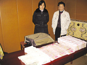 辦案人員在清點(diǎn)贓款(左為潘玉梅)圖片來(lái)源:揚(yáng)子晚報(bào)