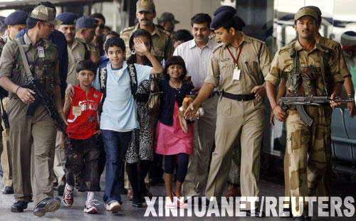 2月26日,電影《貧民窟的百萬富翁》中的幾名小演員在保安的護(hù)送下走出印度孟買國際機(jī)場(chǎng)。在22日晚舉行的第81屆奧斯卡獎(jiǎng)?lì)C獎(jiǎng)典禮上,以印度為背景的電影《貧民窟的百萬富翁》一舉囊括了包括最佳電影、最佳導(dǎo)演在內(nèi)的8個(gè)獎(jiǎng)項(xiàng),讓印度全國為之興奮。 新華社/路透