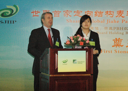概要: 圖為世界首家麥秸定向結(jié)構(gòu)板示范工廠奠基新聞發(fā)布會 進入2009年,席卷全球的金融風暴,使全球板材行業(yè)面臨著有史以來最大規(guī)模的洗牌整合。在大部分企業(yè)考慮如何儲備“糧草”過冬的時候,荷蘭PanelBoardHoldings農(nóng)業(yè)纖維板材有限公司(PBH)選擇在此時期擴充企業(yè)實力,謀求未來的厚積薄發(fā)。