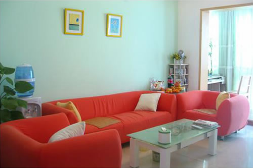 沙發(fā)。已經(jīng)兩年羅,越洗越新,艷色比較耐新。