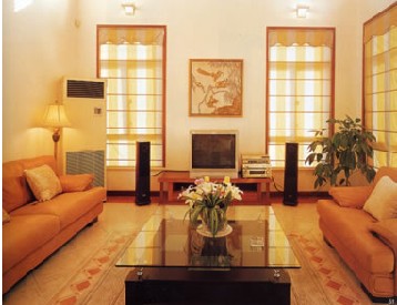 藤器、屏風、熱帶植物,再加上深棕色的木制茶幾和具有熱帶島嶼風景的掛畫、具有東方色彩的鑲玻璃掛飾,一個熱帶風情的居室呈現(xiàn)在眼前。為了調和冷色調的房間,只要擺放了多個色彩鮮艷的靠枕就可以了。