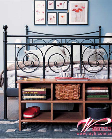 通常在床尾我們不放置任何東西,這個空間一直閑置著,其實可以在床尾放置一個儲物柜,帶滑輪的款式則更方便。這個儲物柜可以放置茶具,可以放置書籍和一些經(jīng)常使用的零星物品。