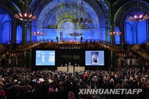 2月25日,中國圓明園流失文物鼠首銅像以1400萬歐元在法國巴黎大皇宮落錘。新華社/法新